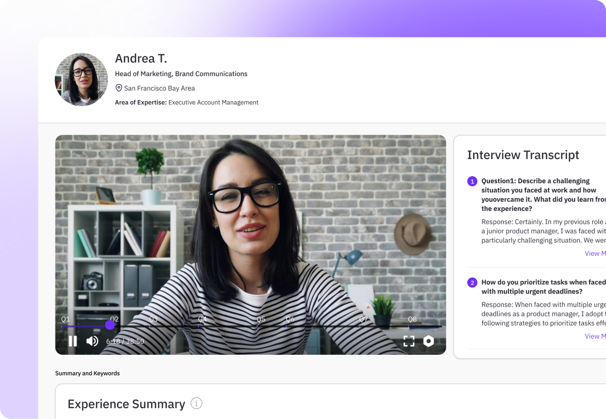 Our AI facilitates video interviews, providing consistent evaluations every time.